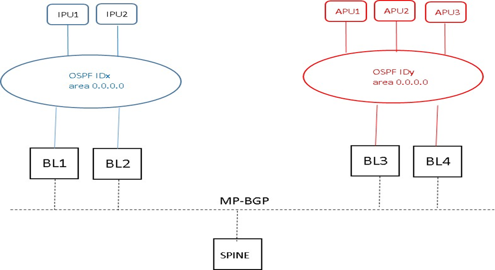 OSPF areas on different border leaf (pairs BL) are different OSPF areas, even if ID match