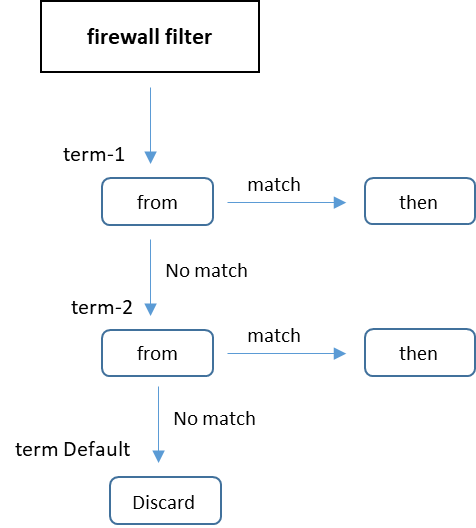 «Term» è il fondamentale building block per un firewall filter; un «term» contiene zero o più match conditions and una o più actions.