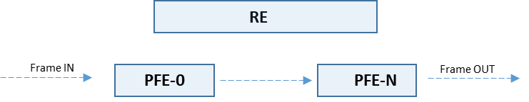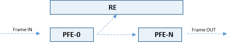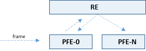 3) Ingress PFE sends header information to RE, where MAC is added or discarded (MAC limiting)