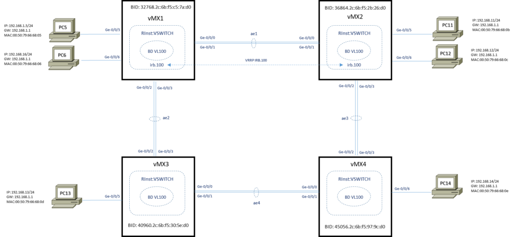 root@vMX1> show spanning-tree bridge routing-instance VSWITCH detail