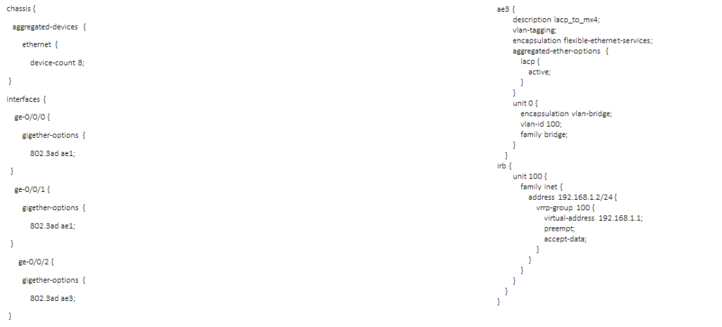 Configuration MX1: chassis and interfaces