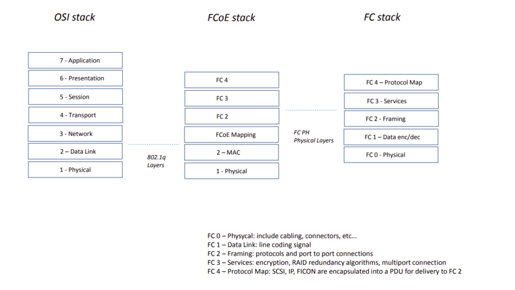 Storage: confronto tra OSI – FCoE – FC stack model